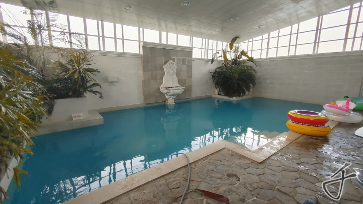 그리고 칵테일바 안쪽으로 들어가면 이렇게 온수로 된 실내 풀장이 있습니다.