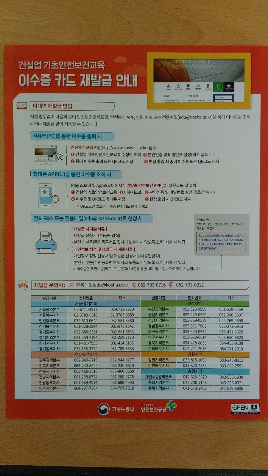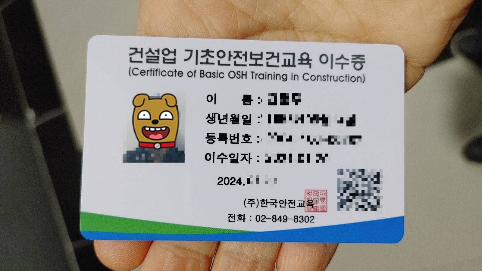 건설기초안전이수증을 발급받기 위해서 다녀왔습니다.