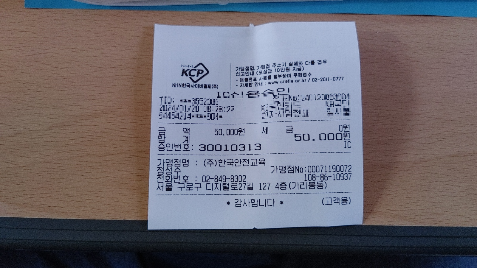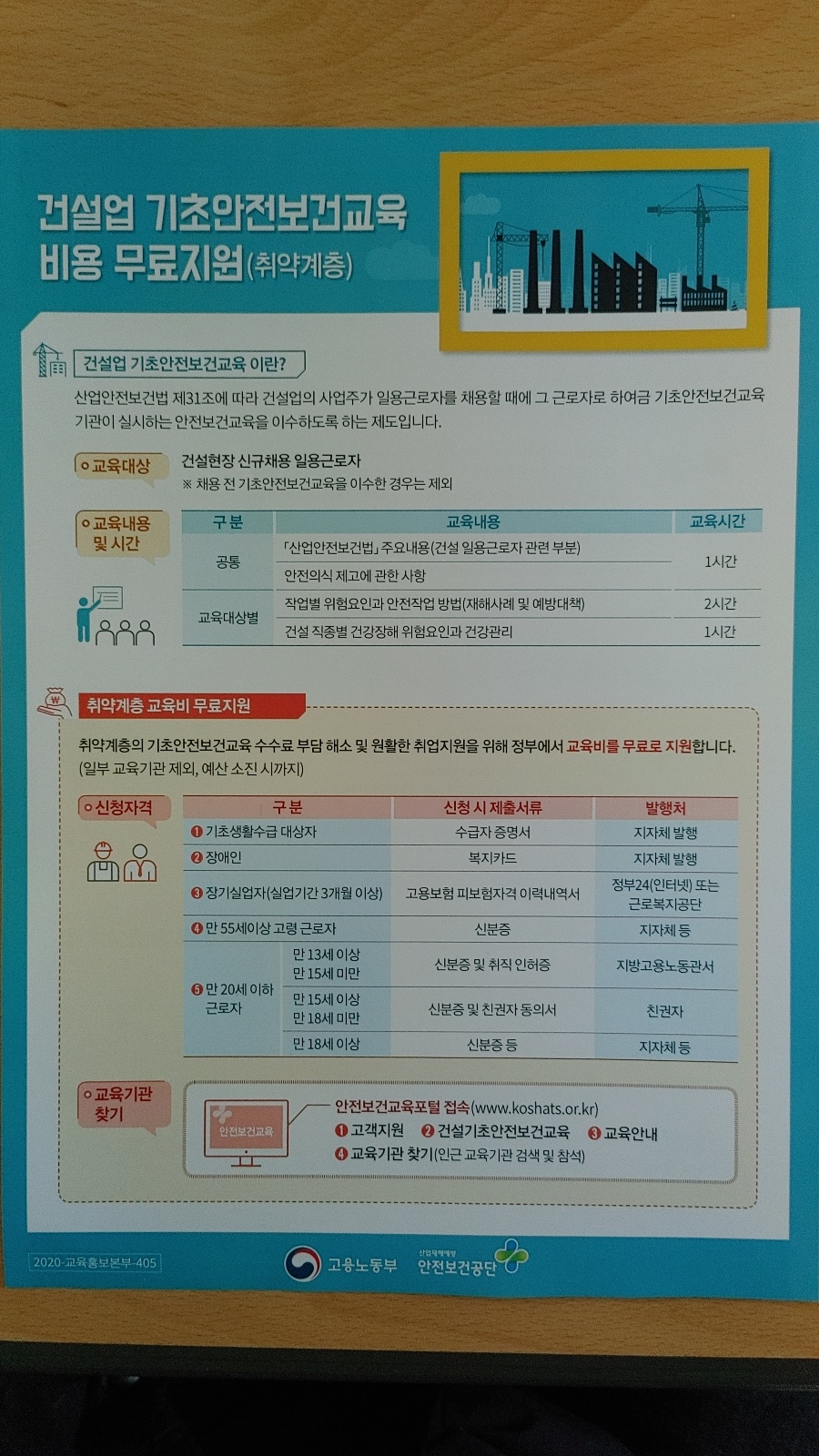 그래서 제일 가까운 구로에 있는 건설안전교육기간에 갔습니다.